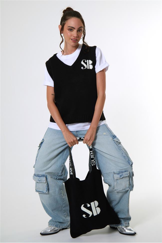 Bolso de punto con cinta Jacquard.