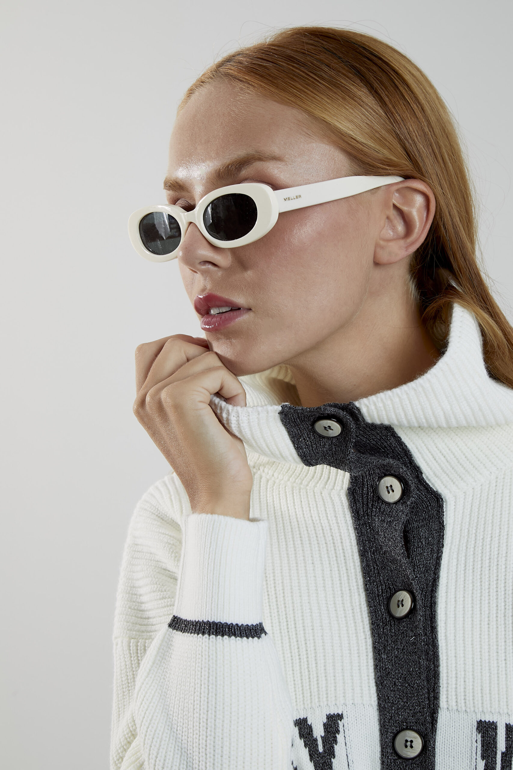 Chaqueta de punto en color crudo con cuello alto, cierre central con botones y manga larga. Contiene las palabras “EVERY WINTER WEAR SUBLIM” en la parte frontal, tejidas en color gris con acabado brillante, al igual que los detalles de los bolsillos y la tapeta central.