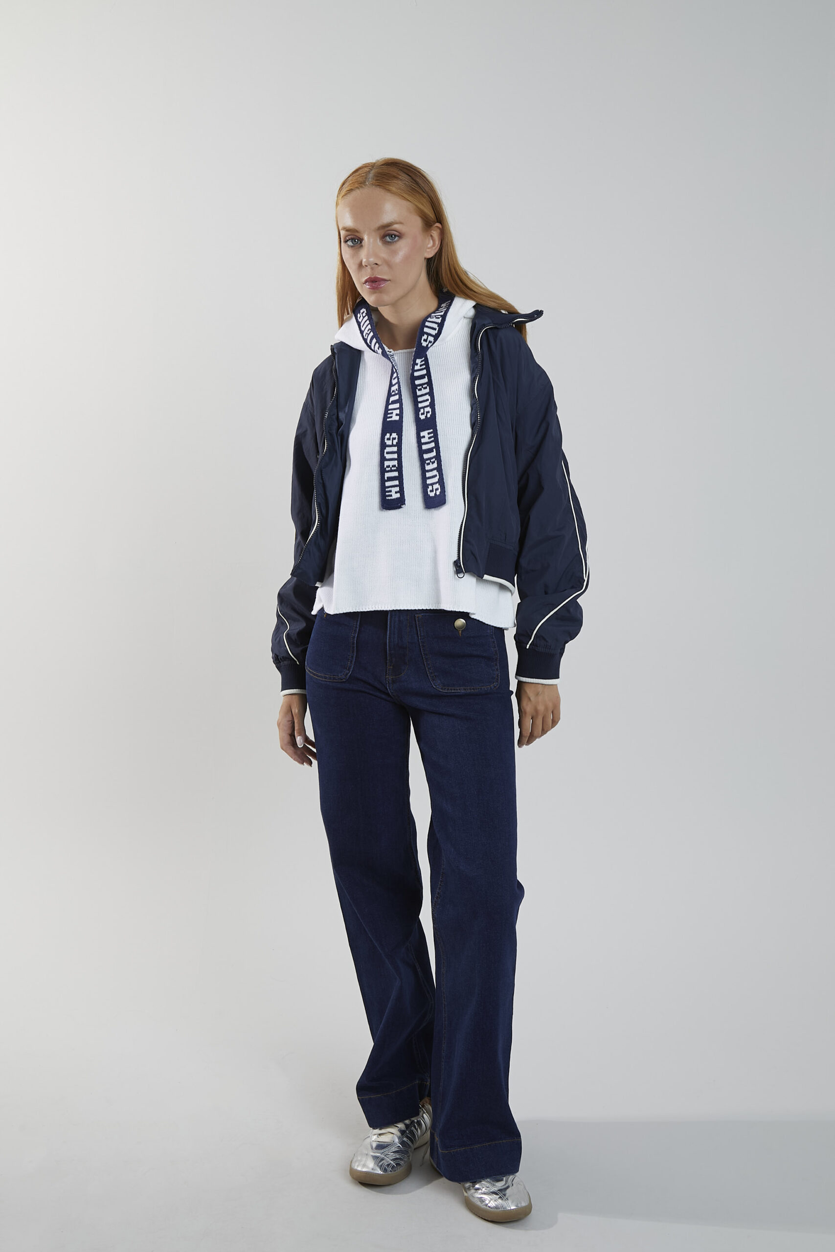 Acabados en canalé en los puños, donde también se incluye una fina línea en contraste azul.
