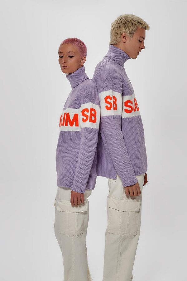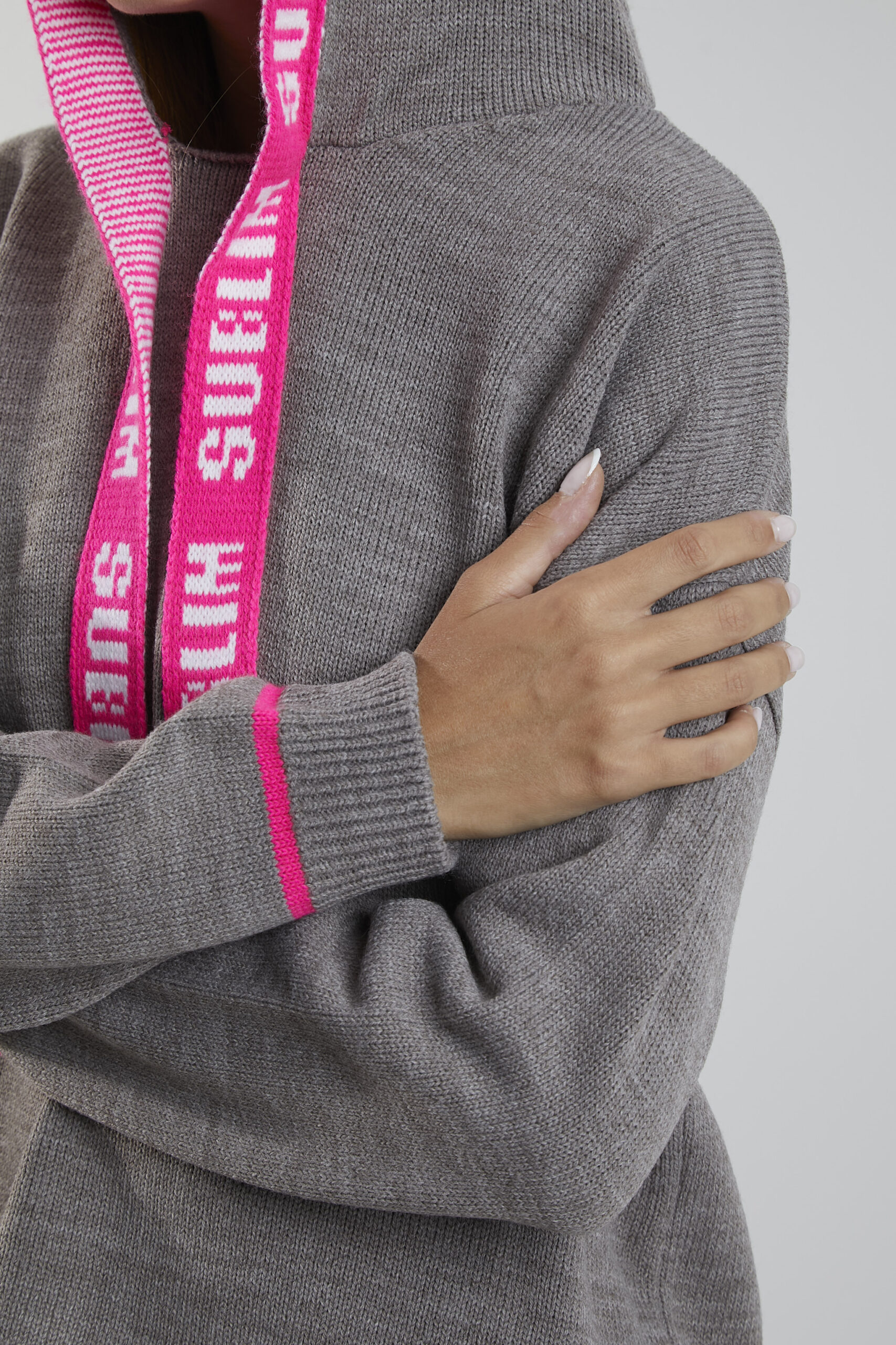 Jersey de punto en color beige, con capucha incorporada y manga larga. Presenta tiras en color rosa con la palabra SUBLIM en crudo, aportando un detalle distintivo al diseño.