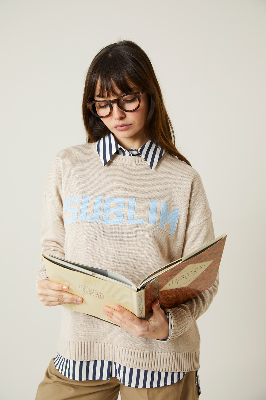 El jersey Mykonos destaca por su ligereza y el detalle en el pecho con la palabra SUBLIM.