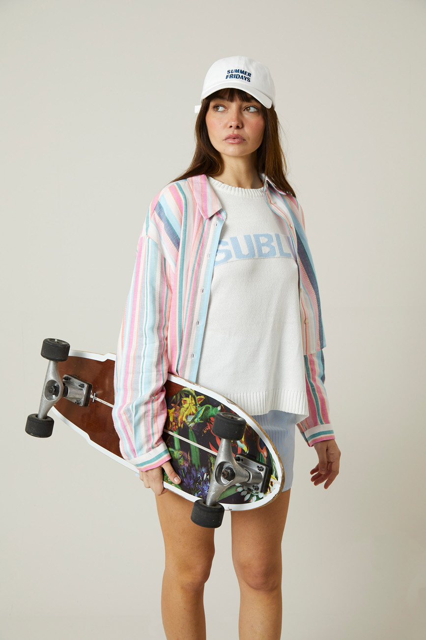 El jersey Mykonos destaca por su ligereza y el detalle en el pecho con la palabra SUBLIM.